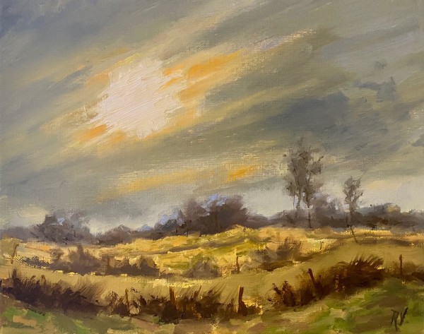 Vliegden, 24x30 cm., olieverf op doek/paneel, blankhouten baklijst. ( Nu bij Galerie Tom Lucassen, Ommen)