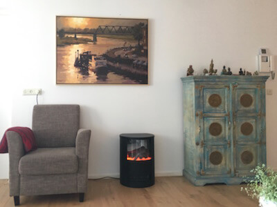 Het schilderij “IJsselkade Deventer” was nog maar nauwelijks klaar en er diende zich al een koopster aan. Het moest nog wel 14 dagen drogen in mijn atelier en ingelijst worden. De nieuwe eigenaresse was verliefd op het schilderij geworden omdat ze de sfeer zo mooi vond en omdat ze speciale herinneringen heeft aan deze plek in Deventer. Ik kreeg van haar deze foto.