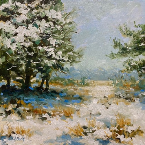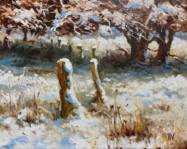 Snowtime 2, 24x30 cm., olieverf op linnen. Blankhouten lijst.